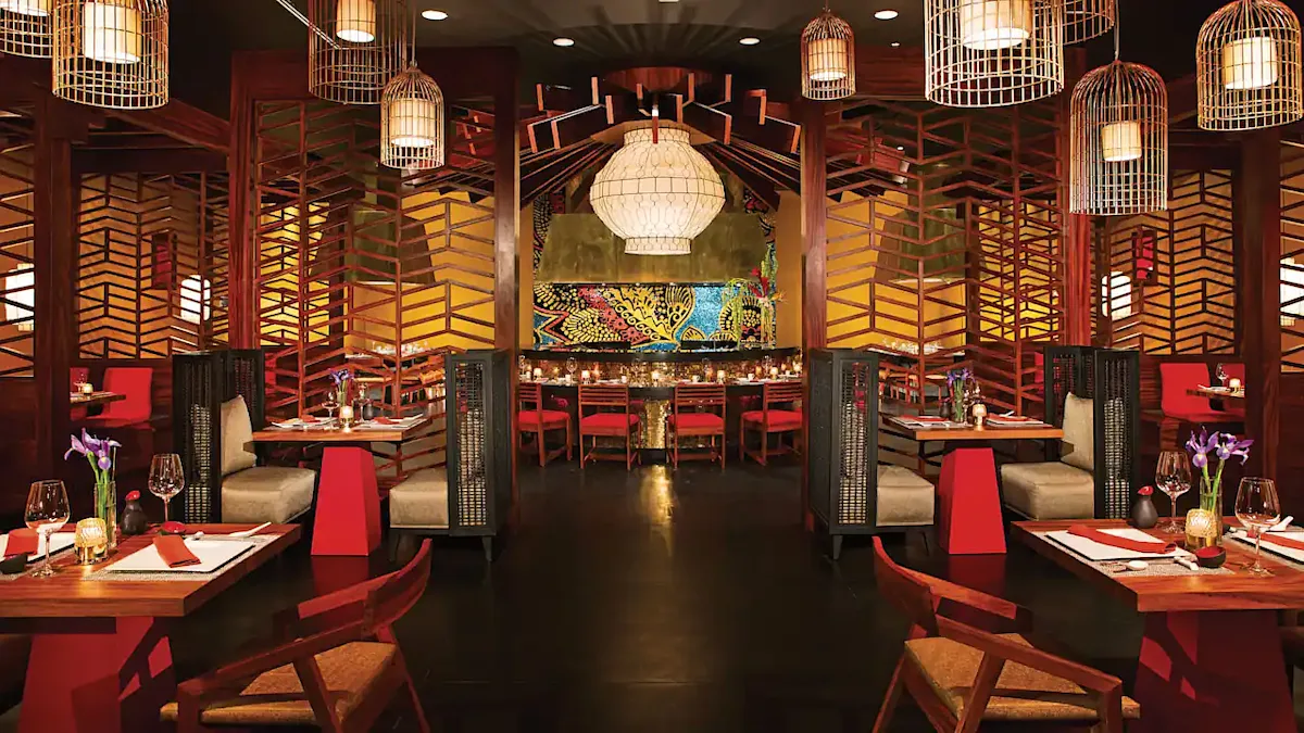 The property boasts 9 restaurants, including fine dining options (Italian, Asian, French, Mexican and Seafood) for dinner. Lunch is served buffet style at the Market Café (also an option for breakfast), as well as poolside (Barefoot Grill). Seaside Grill offers sit down option for lunch by the main pool. Preferred club gives you access to breakfast at the Seaside grill in the morning, in addition to the Market Café. Reservations are not required for any of the specialty restaurants, with the exception of Himitsu (Asian), if you want the Teppanyaki table. The Desires lounge is open late every night and is another option for drinks and music late in the evening.