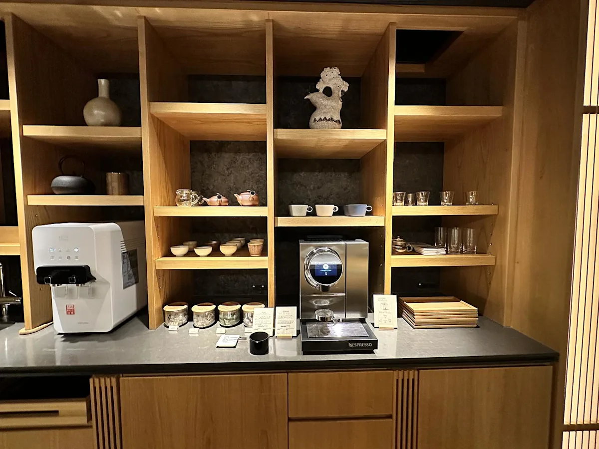 Rooms: We stayed in their Yuri (Deluxe King) room. It was really large with a seating area and separate toilet room from the bathroom which had a large walk in shower and huge standalone tub. Bed was super comfy and had great lighting also. I didn't check out the other rooms but each floor (which has ~5 rooms) has a unique lounge which has a big table and a coffee and tea bar with all the Nespresso and teas you could ever want. They also leave tons of Japanese snacks that you can take including ice cream in the fridge. All free. The coffee/tea station came in super handy for the jet lag or afternoon pick me up.
